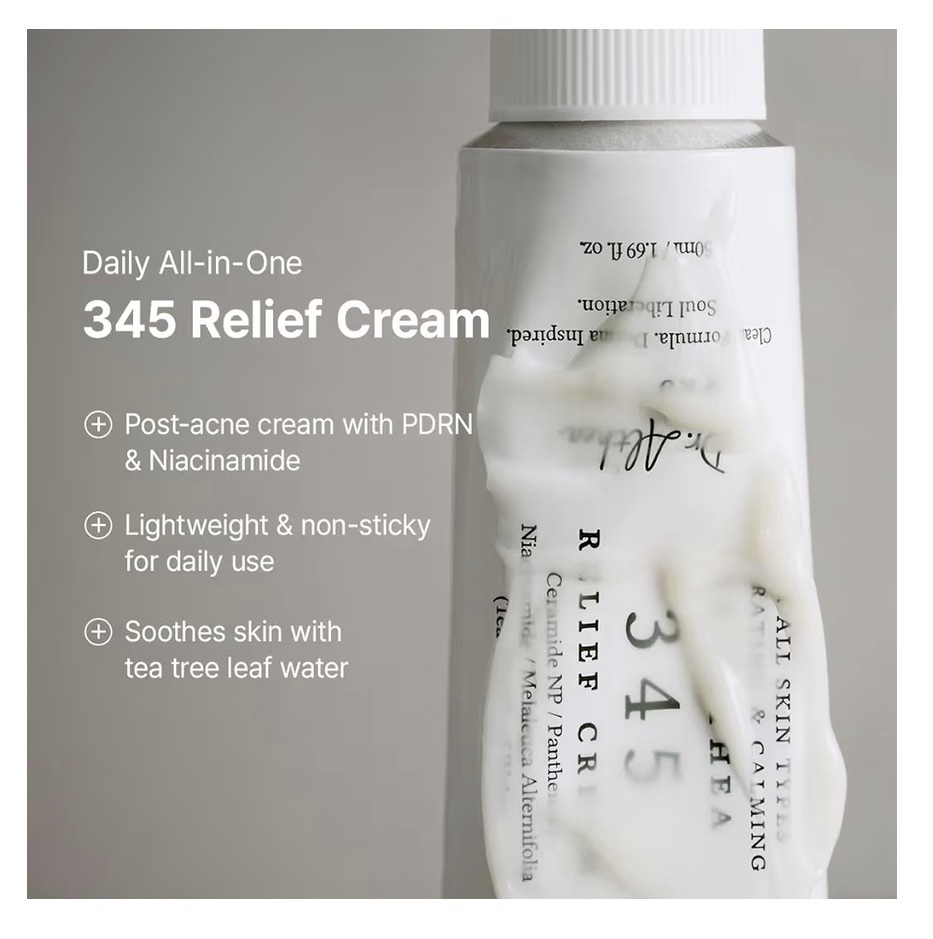 - CREMA DE ALIVIO 345 (1.7 fl oz): Una crema hidratante diaria calmante que calma las manchas y la piel irritada. Formulado con niacinamida y ceramida NP, ayuda a reducir el enrojecimiento, fortalecer la barrera cutánea y ofrecer una hidratación duradera.