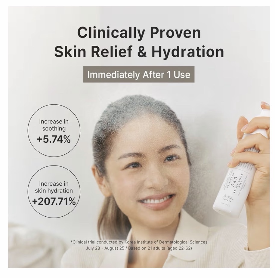 - 345 RELIEF CREAM MIST (3.4 fl oz): La niebla ultrafina repone instantáneamente la piel seca con humedad profunda, ayudando a mantener una hidratación duradera con comodidad durante todo el día.