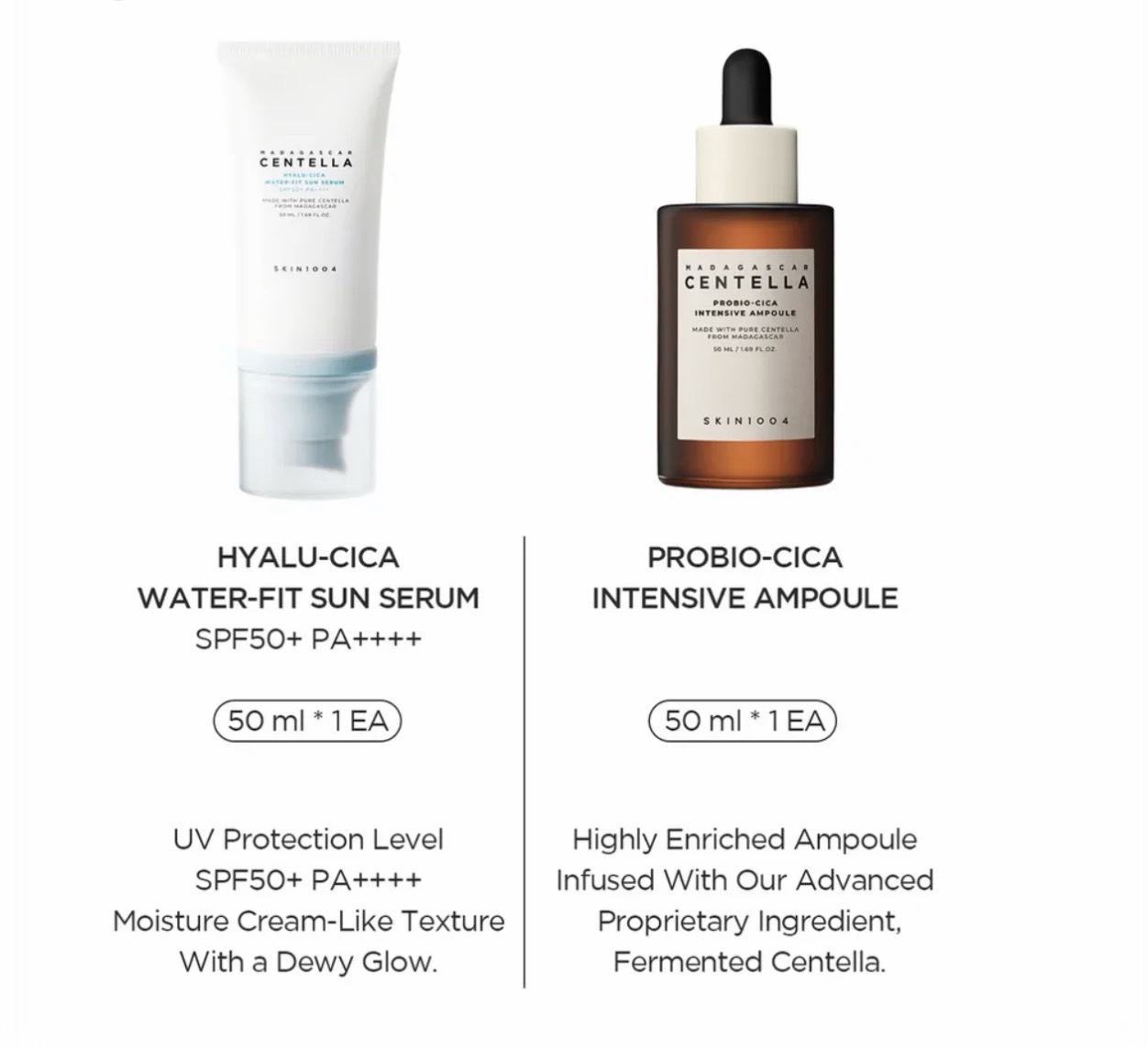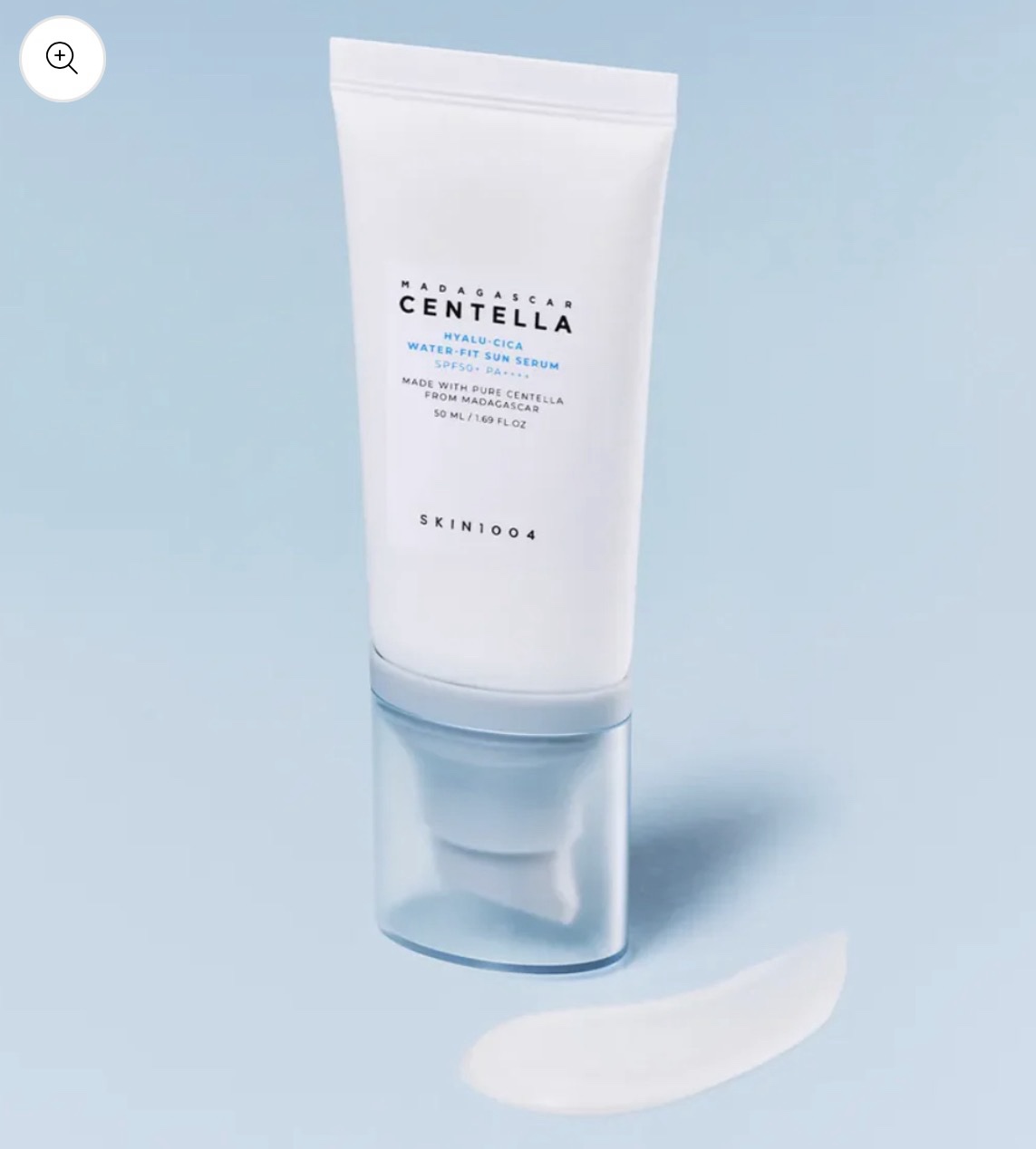- Equipado con SPF 50+ PA++++, este protector solar similar a un suero que contiene ácido hialurónico y extracto de centella asiática calma e hidrata la piel mientras brinda protección solar.
